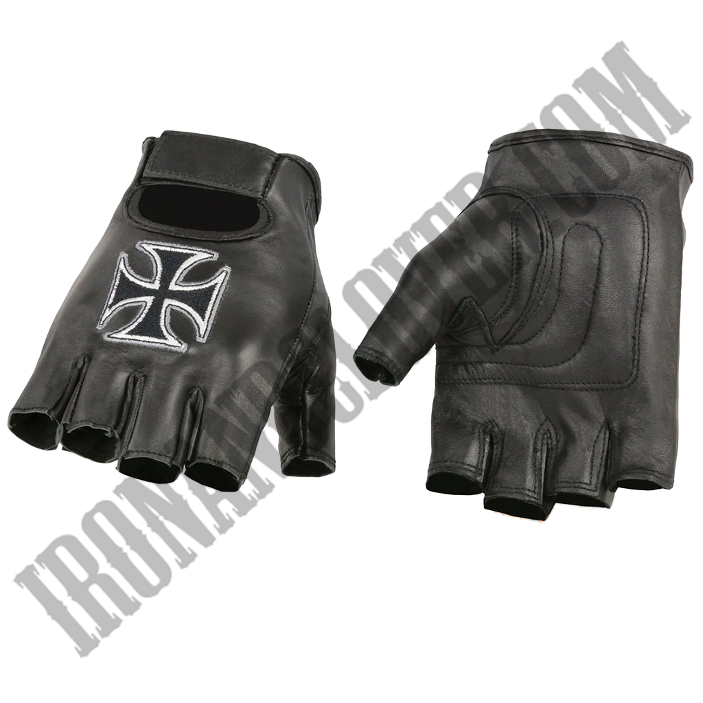 Men’s Iron Cross Leather Fingerless Glove ✝️🖤